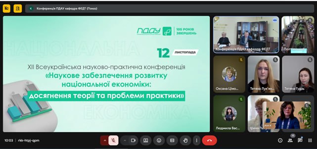 12 листопада 2025 року здобувачі другого (магістерського) рівня вищої освіти освітньо-професійної програми «Фінанси, банківська справа та страхування» Бердянського державного педагогічного університету, Отрох Євгеній та Лук’янчук Тетяна, взяли участь у ХІІ Всеукраїнській науково-практичній конференції «Наукове забезпечення розвитку національної економіки: досягнення теорії та проблеми практики», організованої Полтавським державним аграрним університетом у змішаному форматі за допомогою дистанційних технологій.