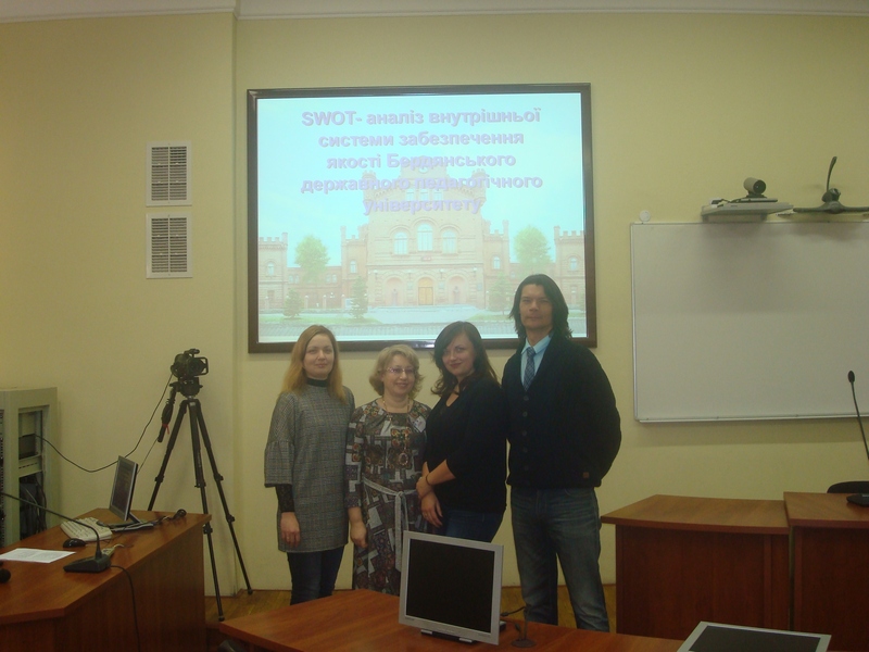 Командою БДПУ в рамках цієї зустрічі була представлена годинна доповідь «SWOT-аналіз внутрішньої системи забезпечення якості Бердянського державного педагогічного університету». Був поданий аналіз як на рівні всього університету, так і на прикладі магістерської програми «Середня освіта. Історія».