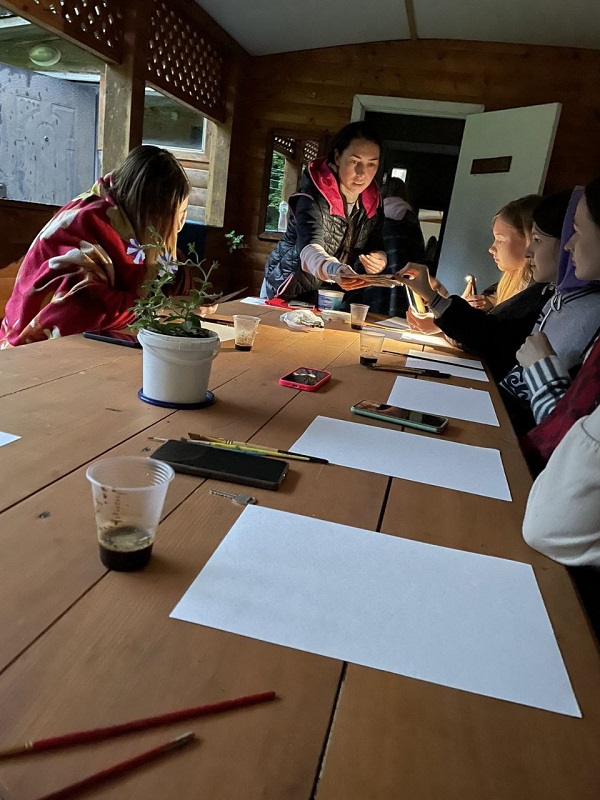 Після обіду викладачки Марина Нестеренко та Крістіна Петрик провели тренінги з елементами STEM-підходу для налагодження командної взаємодії та навиок науково-технічної творчості. Під час вправ ми встигли побудувати вежі з паперу і створити своїми руками різного роду амулети. Жоден вечір не проходив без настільних ігор і чаювання в затишних альтанках на території бази.