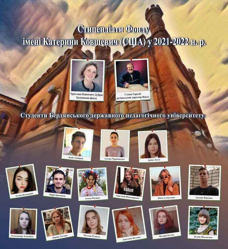 студентів Бердянського державного педагогічного університету із отриманням права стати стипендіатами Фонду імені Катерини Ковшевич (США) у 2021–2022 навчальному році!