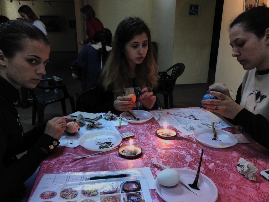 Науковий співробітник музею А. А. Криванова розповіла про символи, особливості побудови композиції на писанках, відкрила секрети розпису писанок воском і продемонструвала найбільш відомі прийоми їх оздоблення. Участь у таких майстер-класах є дуже корисною для майбутніх педагогів, оскільки надає їм можливості залучитися до духовної скарбниці українського народу, поєднати свої теоретичні знання з курсу «Декоративно-прикладне мистецтво як засіб виховання дошкільників» та «Художня праця» з практичною діяльністю, розкрити свої творчі здібності, які необхідні у роботі з дітьми і навчитися створювати оригінальні вироби своїми руками. Організувала цю зустріч доцент кафедри дошкільної освіти Т. Л. Єськова.