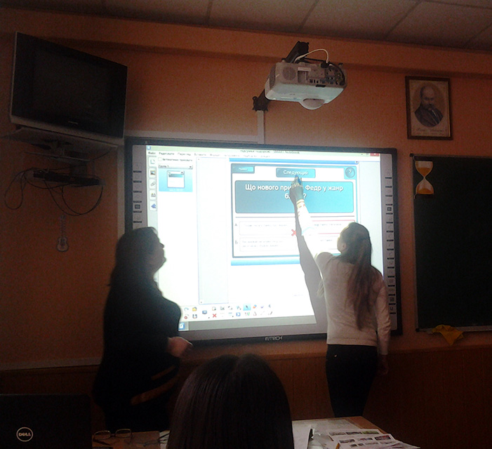 Студенти Інституту філології та соціальних комунікацій (керівники – кандидат філологічних наук, доцент кафедри зарубіжної літератури та теорії літератури І. Е. Співак та старший викладач кафедри української літератури та компаративістики О. І. Харіна) відвідали майстер-клас «Специфіка роботи з інтерактивною дошкою на уроках української та світової літератури», який провела Зоя Іванівна Вовчок – старший вчитель вищої категорії гімназії №1 «Надія» міста Бердянська (див світлини). Учитель-майстер продемонструвала численні засоби роботи з інтерактивною дошкою, залучивши до розв’язання поставлених завдань студентів і викладачів. Майбутні словесники вкотре переконалися: школа й учні сьогодні чекають на творчого педагога-інтелектуала.