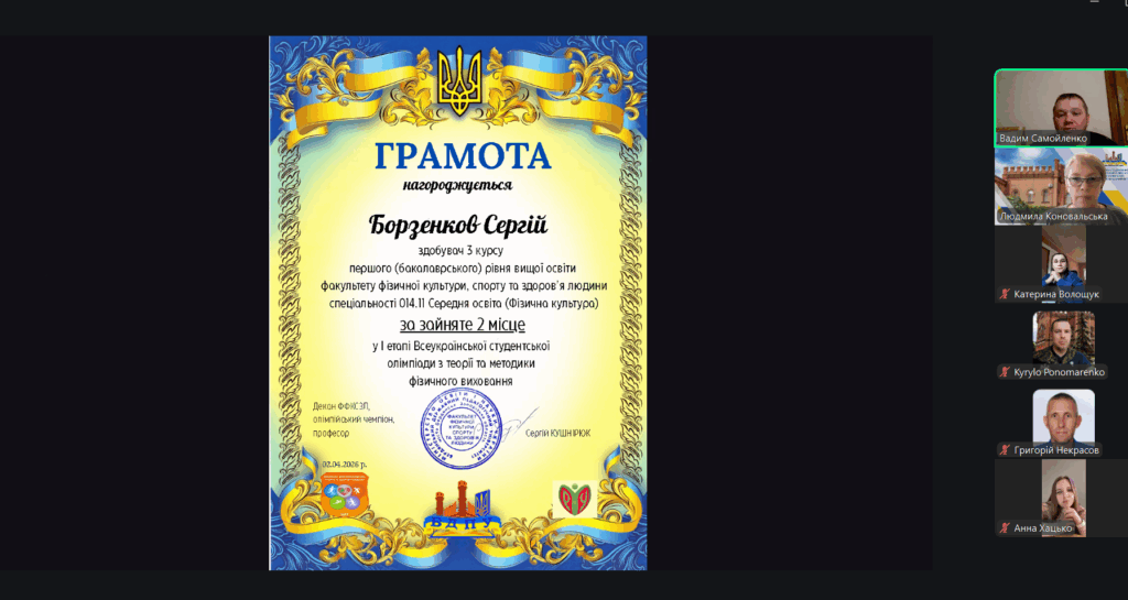 02 квітня 2026 року на факультеті фізичної культури, спорту та здоров’я людини Бердянського державного педагогічного університету відбулася знакова подія — І етап Всеукраїнської студентської олімпіади з освітньої компоненти «Теорія та методика фізичного виховання». У професійному інтелектуальному змаганні взяли участь майбутні фахівці галузі — здобувачі спеціальностей А7 (017) Фізична культура і спорт та А4.11 (014.11) Середня освіта (Фізична культура).