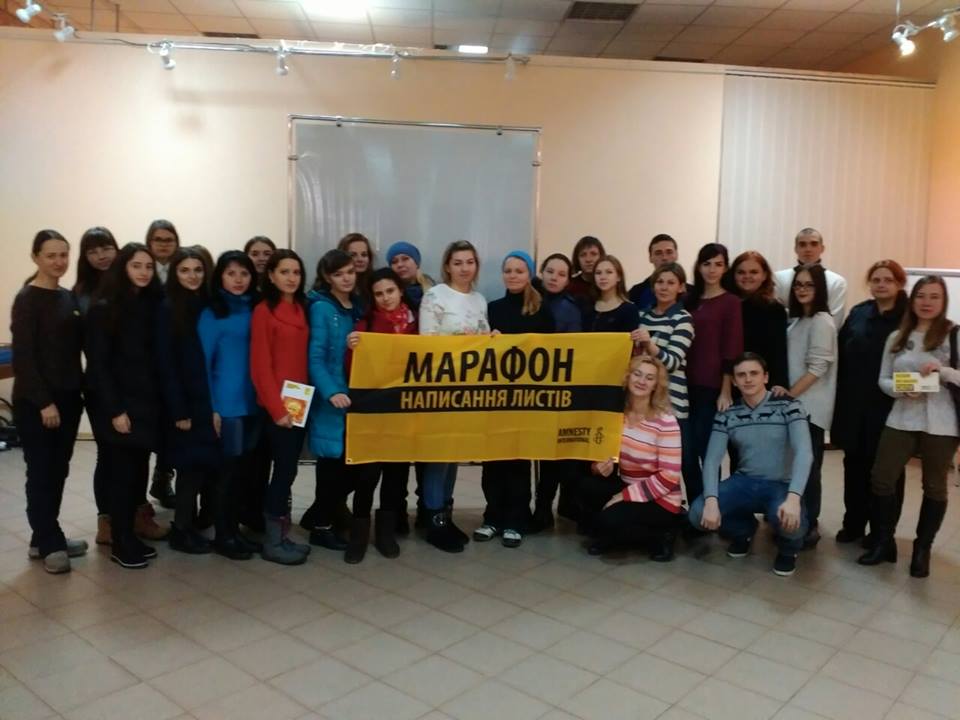 6-го грудня ц.р. студенти спеціальностей «Соціальна педагогіка» та «Соціальна робота», члени волонтерського загону «Палітра добра» (керівники: Катерина Петровська, Анастасія Тургенєва) взяли участь у Марафоні з написання листів за права людини від Amnesty International.