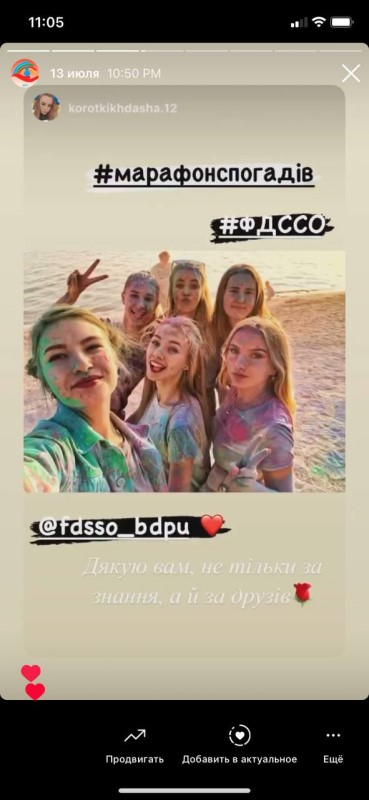 Декілька тижнів випускники реєструвалися, розміщували в Stories архівні фото, писали свої думки щодо навчання в БДПУ, ділилися спогадами: