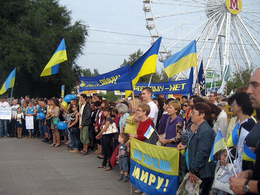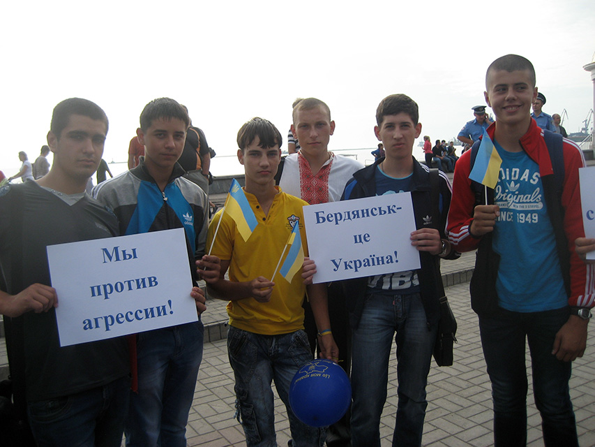 Сьогодні бердянці, як і все патріотичне Запоріжжя, єдиною незламною родиною пройшли вулицями міста спільним «Маршем миру», продемонструвавши всьому світові широкий громадський спротив загрозі терористичної агресії Росії та консолідації Бердянської Громади. Щоби згодом на Приморській площі багатоголосо, разом із виступаючими, заявити, що ми – мирний та трудолюбивий народ, який ніколи не прагнув, щоби його «визволяли» якісь «зелені чоловічки», щоби землю нашу топтав чобіт російського агресора… На київському та сотнях інших Майданів ми відстояли своє право на свободу і не віддамо її нікому!