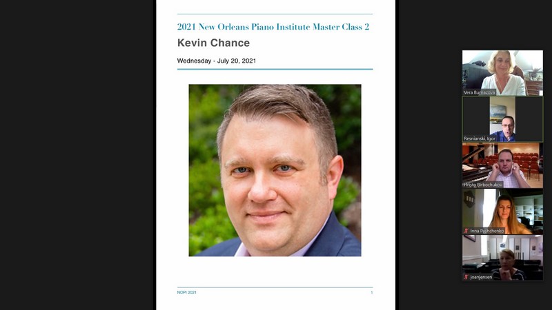 Кевін Ченс – доцент кафедри фортепіано Університету Алабами, координатор Moody Piano Area Gloria Narramore, президент Американської асоціації Метьє.