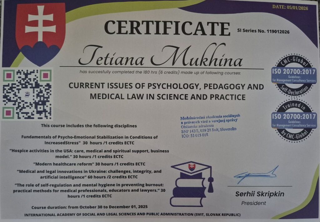 Мета підвищення кваліфікації передбачала вдосконалення фахової компетентності й оволодіння сучасними методиками в галузі психоемоційної стабілізації учасників освітнього процесу в умовах підвищеного стресу, медичної та духовної підтримки колег і студентів, саморегуляції та психогігієни щодо запобігання вигорання стало метою підвищення кваліфікації.