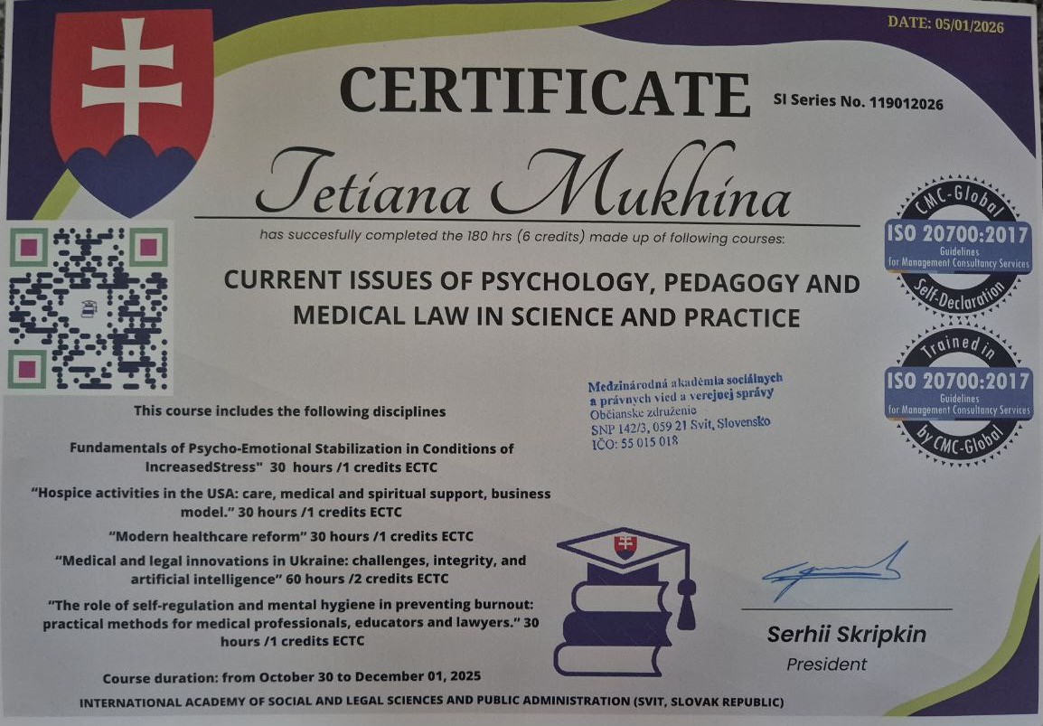 Міжнародне стажування є ключовим інструментом підвищення професійної майстерності викладачів кафедри початкової освіти факультету психолого-педагогічної освіти та мистецтв Бердянського державного апедагогічного університету. Саме тому кандидатка педагогічних наук, доцентка Лада Чемоніна та старша викладачка Тетяна Мухіна у період з 30 жовтня 2025 року по 01 грудня 2025 року пройшли міжнародне науково-педагогічне на тему «Актуальні питання психології, педагогіки та медичного права в науці та практиці».