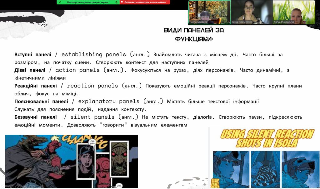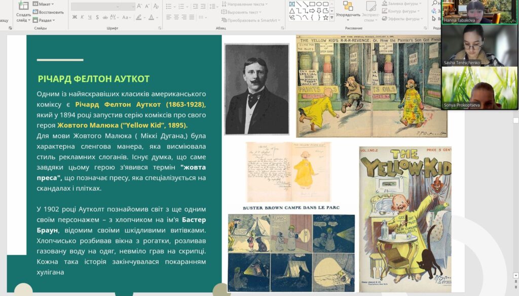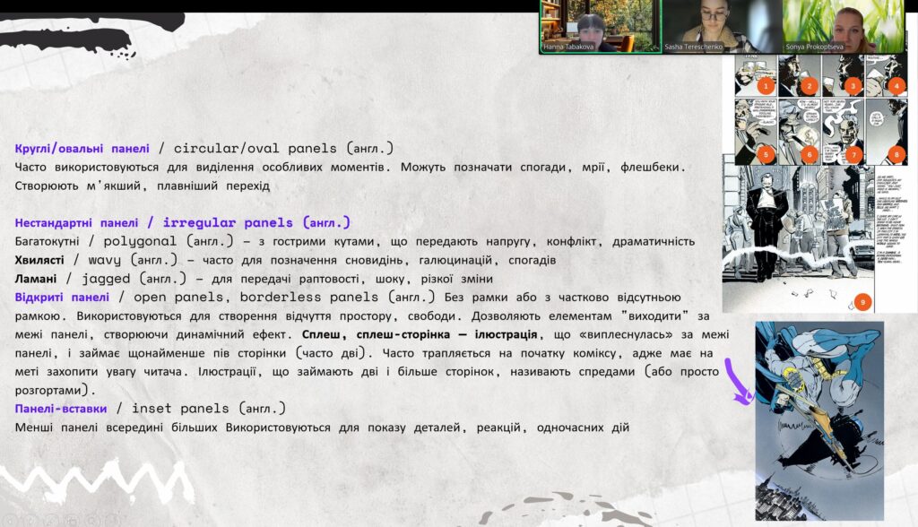На соціально-гуманітарному факультеті магістри спеціальності А4 Середня освіта (Мова та зарубіжна література (англійська)) слухають ОК «Літературна історія коміксу: від гравюри до манги». У контексті курсу цікаво спостеріагати й вивчати, як поєднуються різні види медіа, під час навчання ми дивимося фрагменти аніме, читаємо комікси, обговорюємо зв’язок літературних сюжетів та їх інтерпретацію в масовій культурі, порівнюємо різні форми візуальних історій.