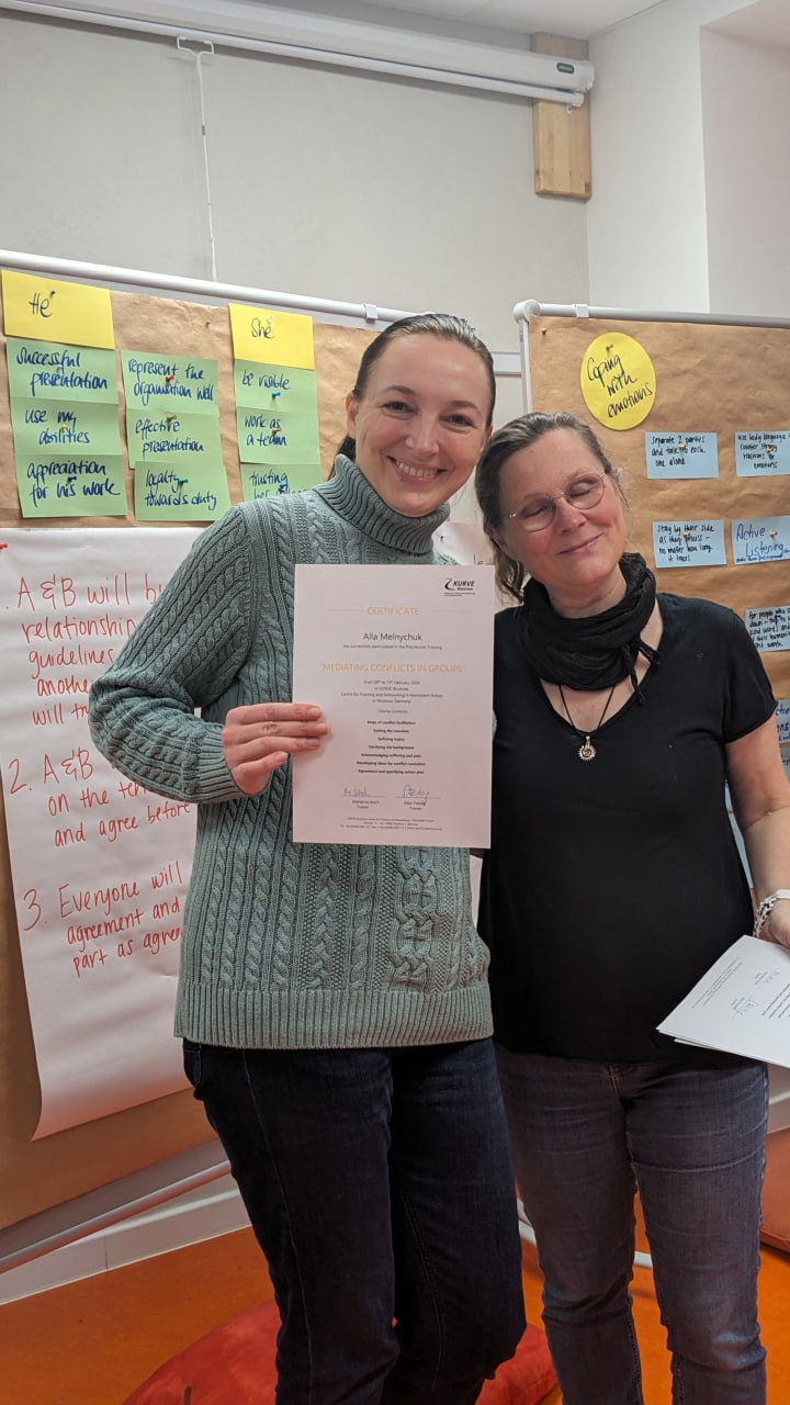 Тренерками заходу виступили експертки з медіації Marianne Koch та Silke Freitag, які мають багаторічний досвід роботи у сфері трансформації конфліктів.