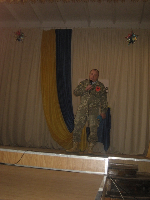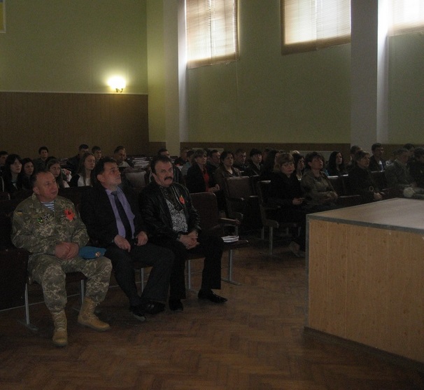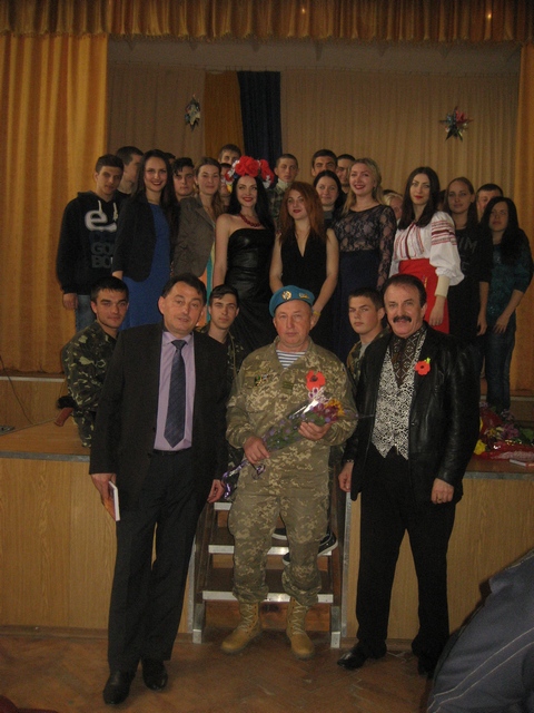 Спочатку зі сцени звучали вірші, патріотичні пісні, а згодом – Сергій Іванович, який недавно повернувся зі служби в зоні АТО, ділився хвилюючими воєнним враженнями, закликаючи молодь берегти рідну Україну, бути готовим захищати її завжди… А Степан Миколайович, розповідаючи про силу та важливість волонтерського руху, дякував колективу навчального закладу за постійну підтримку «Наших Атлантів» у підготовці фронтових вантажів…