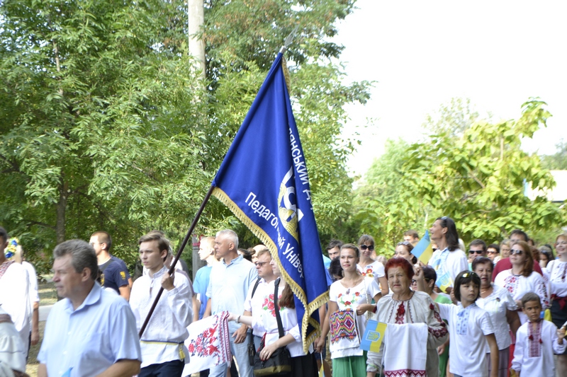 Сьогодні, 23 серпня, представники професорсько-викладацького та студентського колективів БДПУ на чолі з ректором університету, професором Ігорем Богдановим разом із патріотично налаштованими бердянцями традиційно відзначили День Прапора України урочистою ходою від п'ятого корпусу БДПУ до площі Єдності (див. світлини).