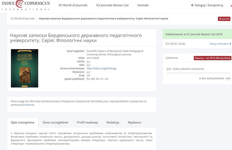 Зазначимо, що фахові видання БДПУ (Серії: Філологічні та Педагогічні науки) також входять до наукометричних баз даних: