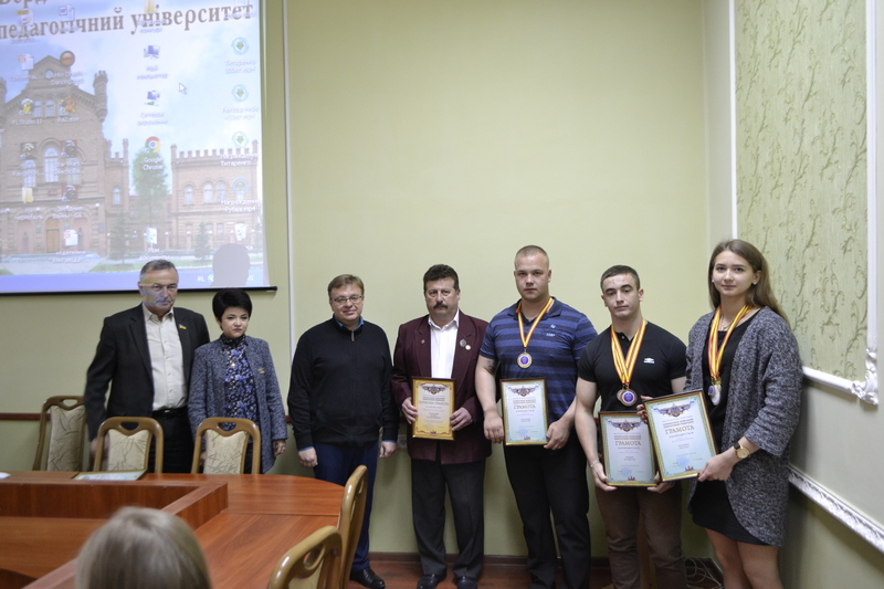 Сьогодні, 16 травня, в університетській конференц-залі ректор БДПУ, професор Ігор Богданов, вручаючи Грамоти викладачу університету, заслуженому тренеру України Леоніду Котенджи та студентам, щиро здоровив їх із «золотими» спортивними досягненнями, побажав подолання нових спортивних вершин.