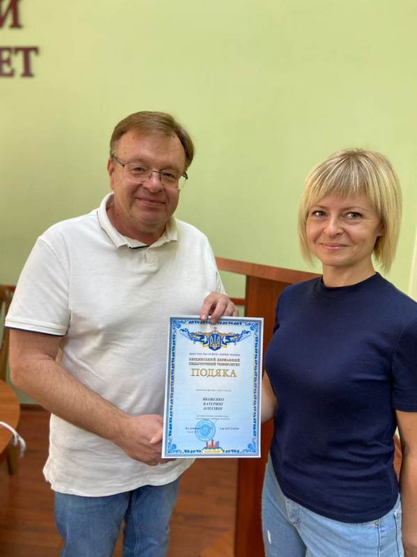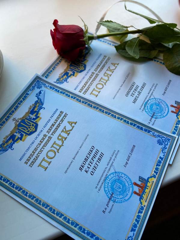 На оперативній нараді в.о. ректора БДПУ, професор Ігор Богданов нагородив адміністратора бази даних (ЄДЕБО) Тетяну Оношко і провідного фахівця з якості (освіта) Катерину Яковенко подяками за компетентність, якісний підхід і відповідальне ставлення до роботи.
