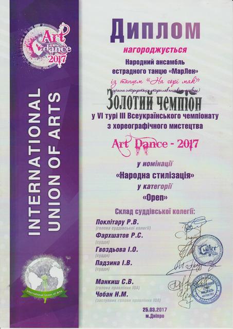 Народний ансамбль естрадного танцю «МарЛен» нашого університету 25 березня ц. р. взяв участь у VІ турі Чемпіонату України з хореографічного мистецтва, який проходив у місті Дніпрі.
