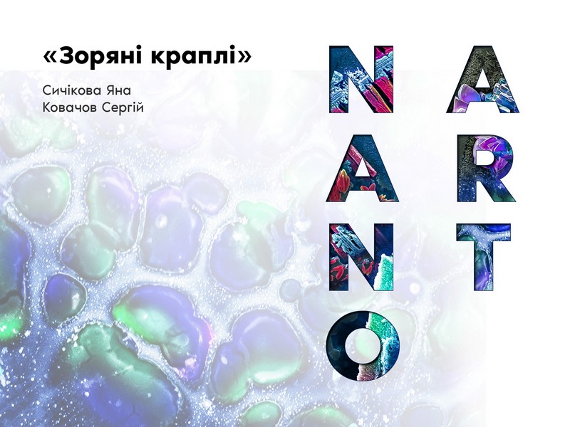 Наші молоді науковці, які працюють у напрямку НаноАрт вже не перший рік, доцент Сичікова та молодший науковий співробітник Сергій Ковачов представили на конкурс роботу «Зоряні краплі» – зображення поверхні нанопоруватого кремнію, отриманого методом електрохімічного травлення. За результатами конкурсу Яна Сичікова та Сергій Ковачов увійшли до п’ятірки найкращих і отримали сертифікати фіналістів. До речі, сертифікат прикрашає робота наших «наноартівців», яка у попередньому конкурсі посіла перше місце.