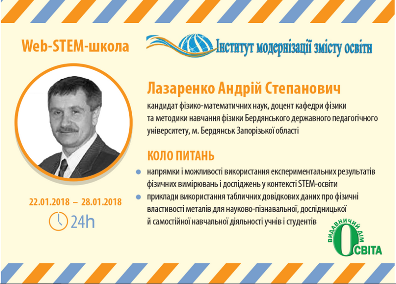 На нещодавно завершеній зимовій сесії Web-STEM-школи-2018 серед п’ятдесятьох спікерів (фахівців, які презентують навчальні матеріали) із України та зарубіжжя було двоє представників БДПУ: кандидат педагогічних наук, доцент, завідувач кафедри математики та методики навчання математики Наталя Вагіна (тема – «Від ерудита до полімата: напрями і форми навчання інтеграції математичних знань у STEM-орієнтованому освітньому просторі»; аудиторія – понад 1200 осіб, які ознайомилися з матеріалами) і кандидат фізико-математичних наук, доцент кафедри фізики та методики навчання фізики Андрій Лазаренко (тема – «Фізичні таблиці як джерело інформації: використання та обробка»; аудиторія – понад 600 осіб). Є приємним і те, що у цій сесії Web-STEM-школи в якості спікера виступила колишня випускниця БДПУ, а нині – вчитель математики та інформатики Мелекінської загальноосвітньої школи І-ІІІ ступенів Мангушського району Донецької області Олена Ніколаєва (Лисечко) (тема – «STEАM-проект «Книжкова полиця»). Це гарне підтвердження інноваційної спрямованості підготовки майбутніх фахівців на факультеті фізико-математичної, комп’ютерної та технологічної освіти нашого університету. На світлинах – візитівки спікерів Web-STEM-школи.