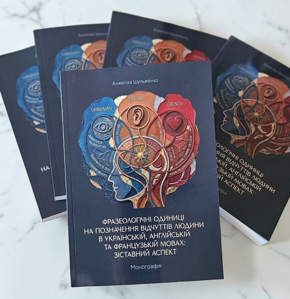 Не менш значущою є монографія Анжеліки Шульженко «Фразеологічні одиниці на позначення відчуттів людини в українській, англійській та французькій мовах: зіставний аспект». Дослідження присвячене зіставному аналізу фразеологізмів, що репрезентують сферу людських відчуттів у різних мовах і культурах. Застосування комплексної методики дозволило авторці розглянути фразеологічні одиниці в кількох вимірах: ідеографічному – через ієрархічну організацію тематичного поля «Відчуття людини»; структурно-граматичному – через виявлення найпродуктивніших моделей; семантичному – через аналіз метафоричних і метонімічних механізмів, а також системних відношень між одиницями. У результаті зіставлення визначено ізоморфні та аломорфні властивості фразеологізмів і встановлено ступінь їхньої продуктивності в кожній із досліджуваних мов. Праця стане цінною для науковців, аспірантів і магістрантів, які працюють у галузі зіставного й типологічного мовознавства.