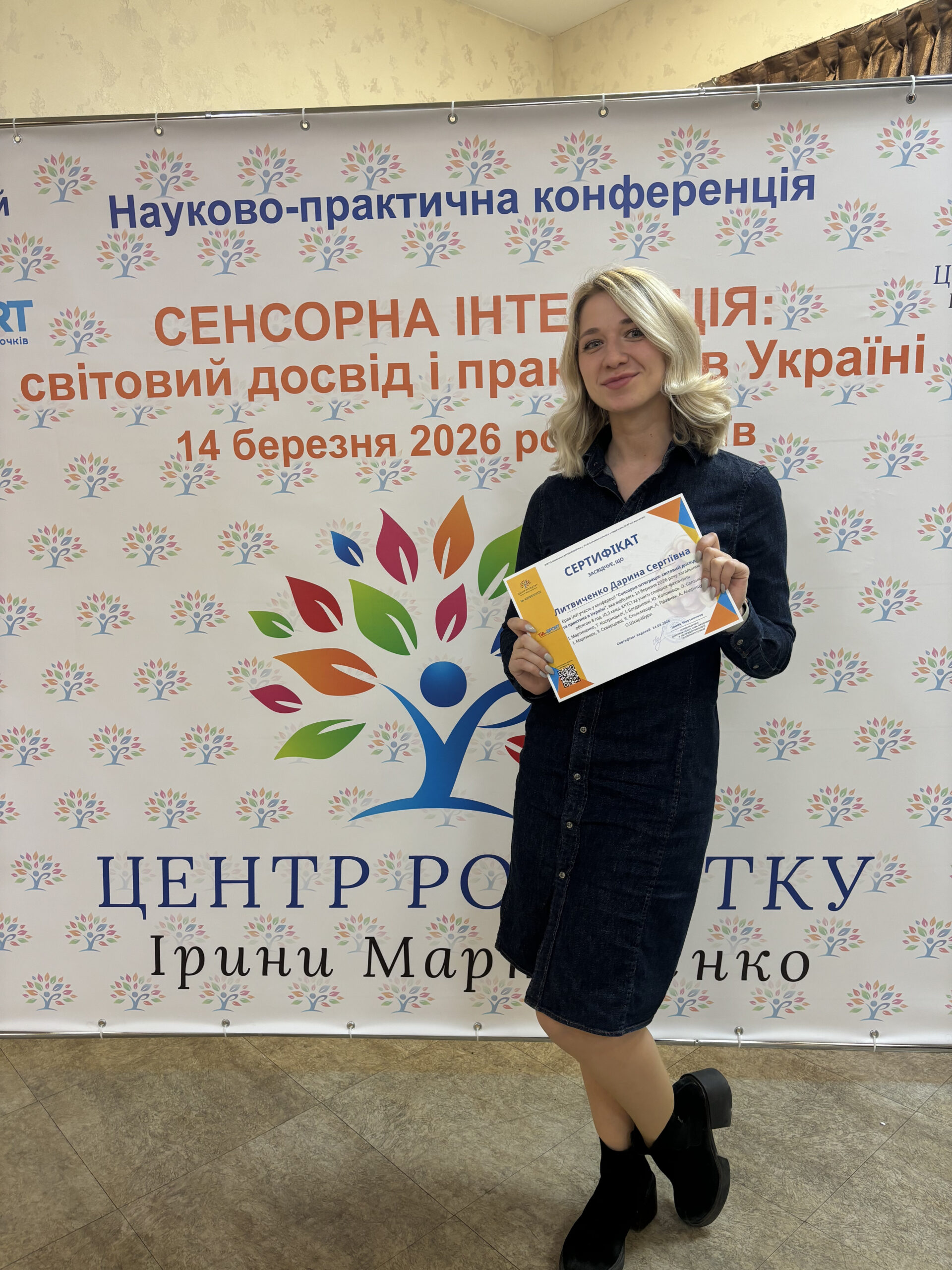 Старша викладачка кафедри прикладної психології та логопедії Бердянського державного педагогічного університету Литвиченко Дарина взяла участь у науково-практичній конференції «Сенсорна інтеграція: міжнародний досвід і практика в Україні», яка об’єднала фахівців у галузі корекційної педагогіки, ерготерапії, логопедії та сенсорної інтеграції.