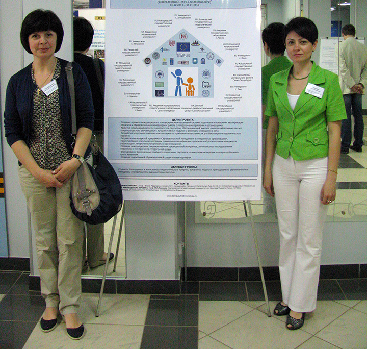 Після старту спільного європейського Темпус-проекту «Підготовка педагогів і освітніх менеджерів до роботи з гетерогенними групами й організаціями» пройшло всього півроку, але його виконавці з Бердянського державного педагогічного університету вже взяли участь у низці важливих заходів щодо його реалізації. Значною подією для проектантів стала участь у Міжнародній конференції «Мережева взаємодія університетів з соціальними партнерами в галузі інклюзивної освіти: міжнародний і регіональний аспект», яка проходила з 19 по 22 травня 2014 року в межах Тижня міжнародної співпраці в Новгородському державному університеті імені Ярослава Мудрого (м. Великий Новгород, Росія). У роботі конференції взяли активну участь ми – координатор проекту в БДПУ, доцент Ольга Гуренко та директор Компетентнісного центру інклюзивної освіти БДПУ, професор Вікторія Загороднова.