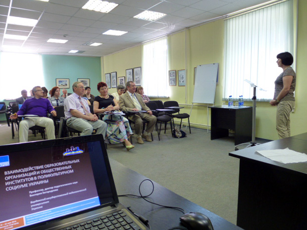Ми взяли участь у роботі секції «Мережева взаємодія освітніх організацій та суспільних інститутів у полікультурному соціумі». Так, неабиякий інтерес та жваве обговорення присутніх викликала доповідь Вікторії Загороднової «Взаємодія навчальних закладів і громадських організацій у полікультурному соціумі південно-східного регіону України», у якій звернула увагу науковців на питання функціонування державної мови і рідних мов представників національних спільнот в Україні загалом та українському Північному Приазов’ї зокрема. Вікторія Федорівна розповіла про національні товариства, що функціонують в м. Бердянську, їхні культурно-просвітницькі завдання, співпрацю з навчальними закладами.