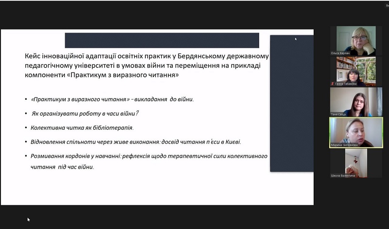 Фестиваль науки в БДПУ, що відбувався протягом тижня, починаючи з 13 травня, приніс багато чудових онлайн і офлайн подій. Для кафедри української та зарубіжної літератури і порівняльного літературознавства тиждень теж виявися насиченим і дуже цікавим. Так, 14 травня відбулося засідання двох наукових секцій. Спочатку про свої дослідження розповіли викладачі кафедри. Виявилося, що більшість сьогодні  займається вивченням питань, так чи інакше повʼязаних з військовими подіями на теренах України. Викладачі поділилися своїми напрацюваннями, презентували доповіді й обговорили перспективи.
