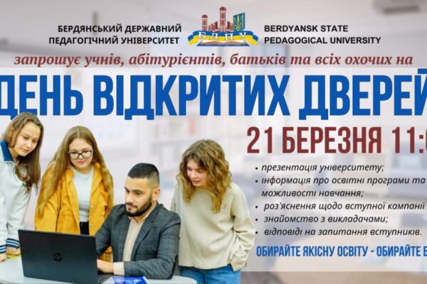 Бердянський державний педагогічний університет запрошує учнів, абітурієнтів, батьків та всіх…