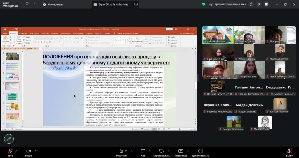 Під час заходу наголошено, що здобувачі освіти мають можливість опановувати ключові навички наряду з формальною освітою також через неформальні освітні платформи та курси, які не входять до складу академічних програм затверджених в ЗВО. Визнання результатів такого навчання регулюється «Положенням про організацію освітнього процесу в БДПУ», а процедура визнання отриманих у неформальній (інформальній) освіті результатів навчання розповсюджується на обов’язкові та вибіркові освітні компоненти ОП, а також на їх складові.