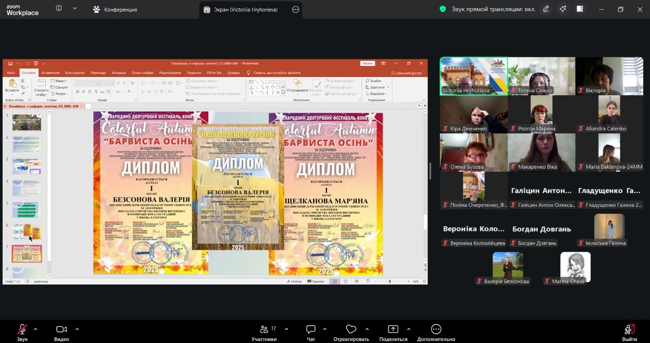 Здобувачів було докладно ознайомлено із алгоритмом визнання зазначених результатів у БДПУ, наведено приклади отриманих результатів здобувачами ОП Середня освіта (музичне мистецтво та англійська мова) у межах практико орієнтованих виконавських освітніх компонентів «Практикум вокально-хорової підготовки» та «Практикум інструментально-виконавської підготовки», а також з освітніми онлайн-платформами, де можна здобувати таку освіту. Із найпопулярніших платформ було зазначено наступні: