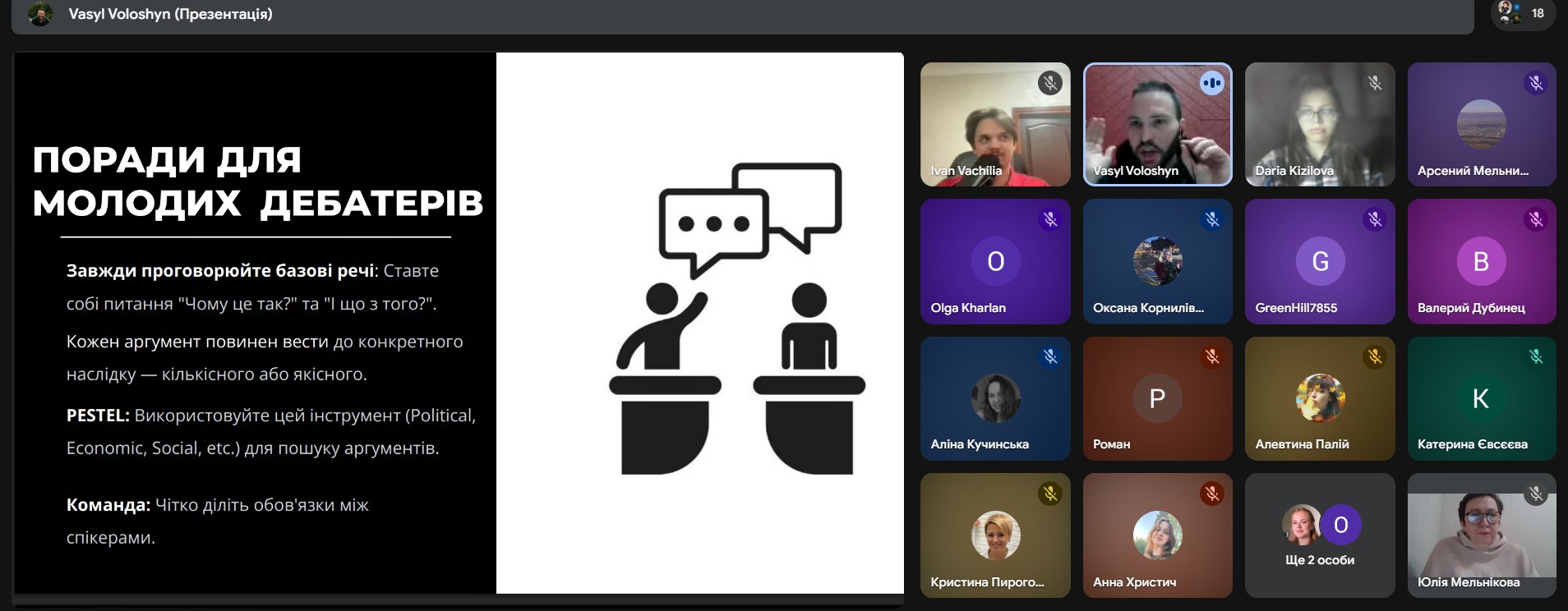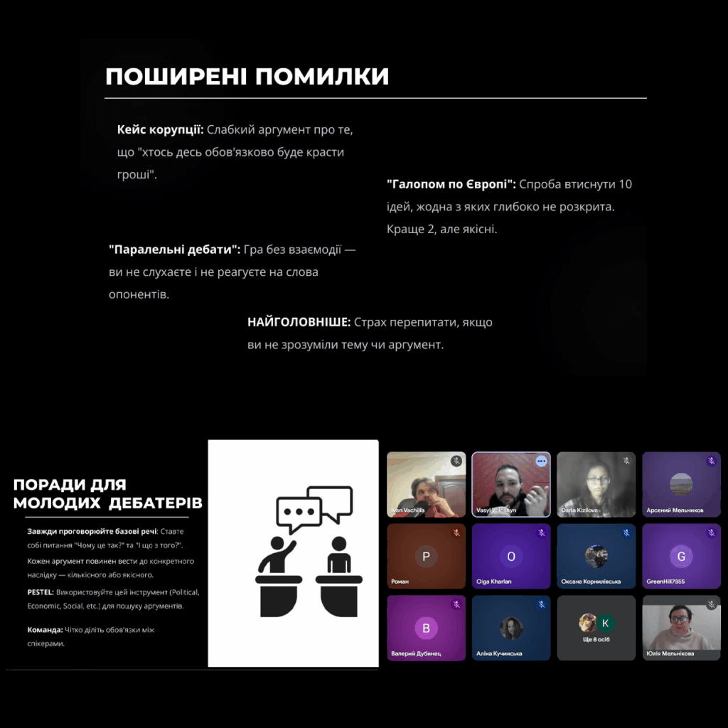 На світлинах кадри презентації представників Львівського дебатного об’єднання.