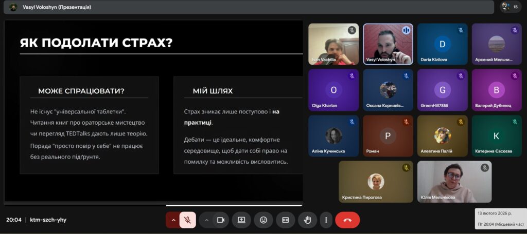 Традиційно п’ятниця 13 лютого, вечір, але зовсім незвичайні активності. До нас завітали з лекцією гості зі Львівського дебатного об’єднання: голова осередку Василь Волошин та Іван Вачіля. Наші лектори – дебатери із багаторічним досвідом гри і суддівства, організатори всеукраїнських турнірів (офлайн і онлайн), фіналісти та переможці багатьох дебатних турнірів.
