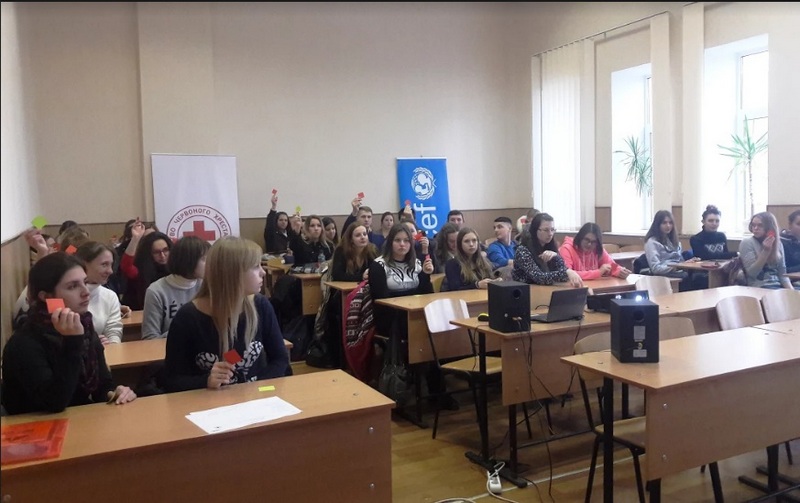 У рамках проведення тижня інформаційно-просвітницьких заходів було організовано та проведено інтерактивне заняття «Профілактика ВІЛ/СНІДу» в рамках реалізації проекту ООН (UNICEF). Модераторами заходу виступили спеціалісти мобільної бригади Центру підтримки сім’ї Катерина Бабіна та Тетяна Корєнєва. Вони запропонували студентам БДПУ молодших курсів розглянути питання, що пов’язані з історією виникнення СНІДу, профілактики даної проблеми. Особливо цікавим був перегляд відеороликів, що стосувалися питань інтимної гігієни, шляхів передачі ВІЛ-інфекції та толерантного ставлення до ВІЛ-інфікованих. На завершення кожна група учасників заходу отримала від Всеукраїнського громадського центру «Волонтер» настільну гру «Крок за кроком», що допоможе набути молоді певного комплексу знань та формуванню навичок відповідальної поведінки щодо власного здоров’я.