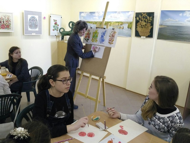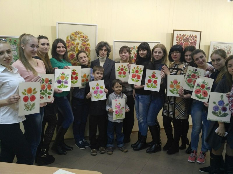 14 березня студенти 201 та 202 груп факультету дошкільної, спеціальної та соціальної освіти БДПУ взяли участь у майстер-класі, що проходив у Художньому музеї ім. І. Бродського – «Секрети Петриківського розпису», який проводила відома художниця Ірина Зяткіна. Майстриня розповіла про особливості побудови композиції в петриківських малюнках, відкрила секрети приготування фарб із додаванням яєчного жовтка та виготовлення незвичайного пензлика – «кошачки».