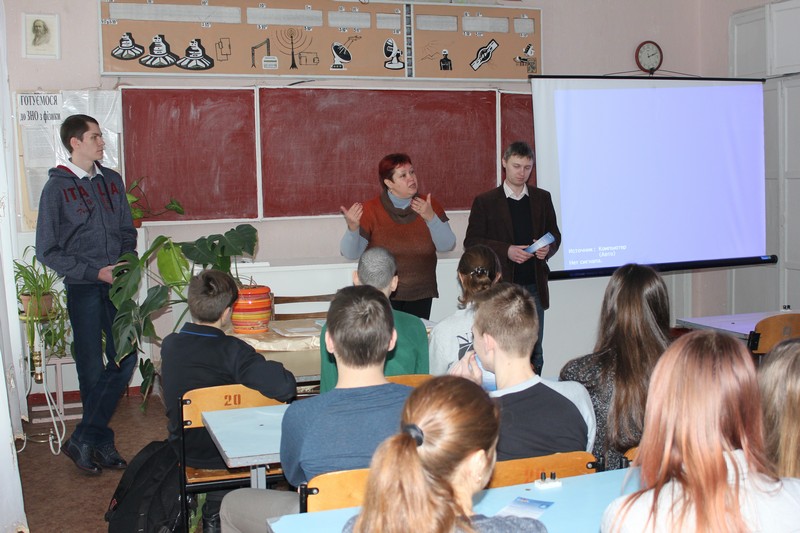 На зустрічі були присутні майже 60 учнів дев’ятих, десятого та одинадцятого класів, які з задоволенням слухали доповідачів і задавали чимало запитань.