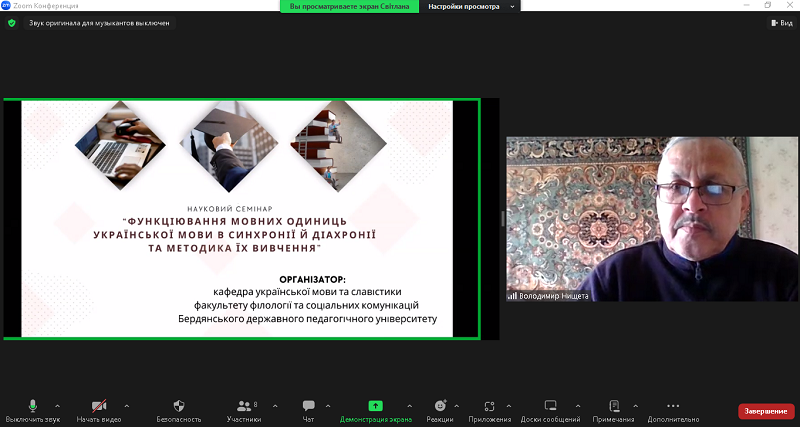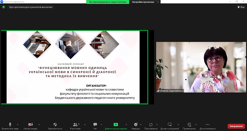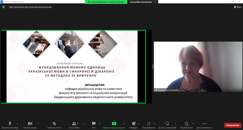 14 травня 2024 р. на факультеті філології та соціальних комунікацій Бердянського державного педагогічного університету проведено семінар «Функціювання мовних одиниць української мови в синхронії й діахронії та методика їх вивчення», у якому взяли участь викладачі кафедри української мови та славістики (відповідальна – завідувачка кафедри, канд. філол. наук, доцентка Світлана Глазова).