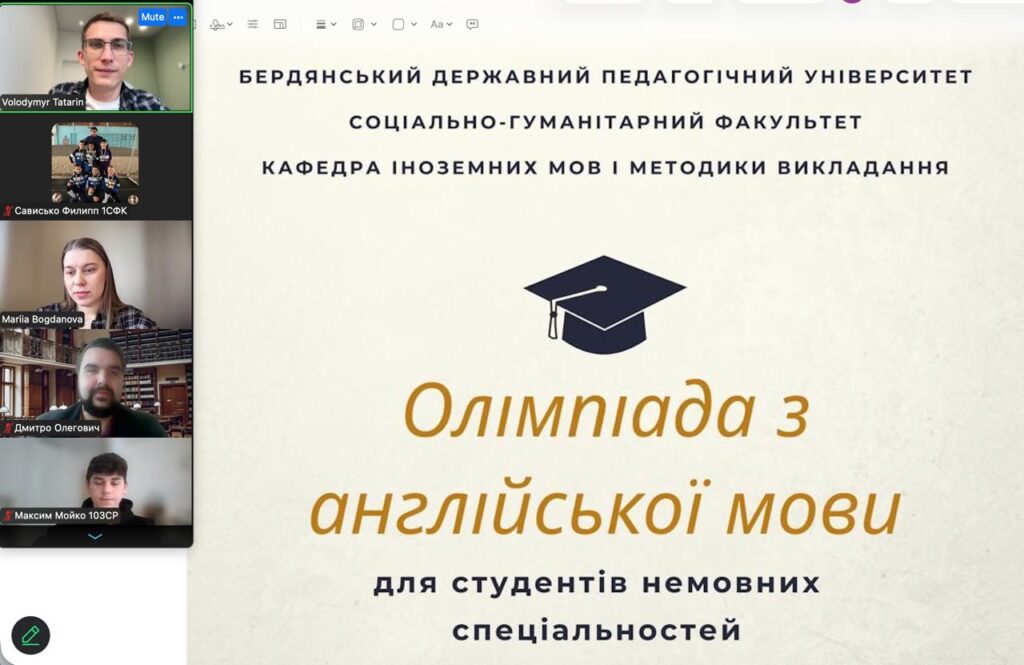 25 лютого викладачі кафедри іноземних мов та методики викладання Татарін Володимир, Богданова Марія та Побережний Дмитро провели олімпіаду з англійської мови для студентів немовних спеціальностей. Здобувачі продемонстрували високий рівень володіння англійською мовою та ґрунтовну підготовку.