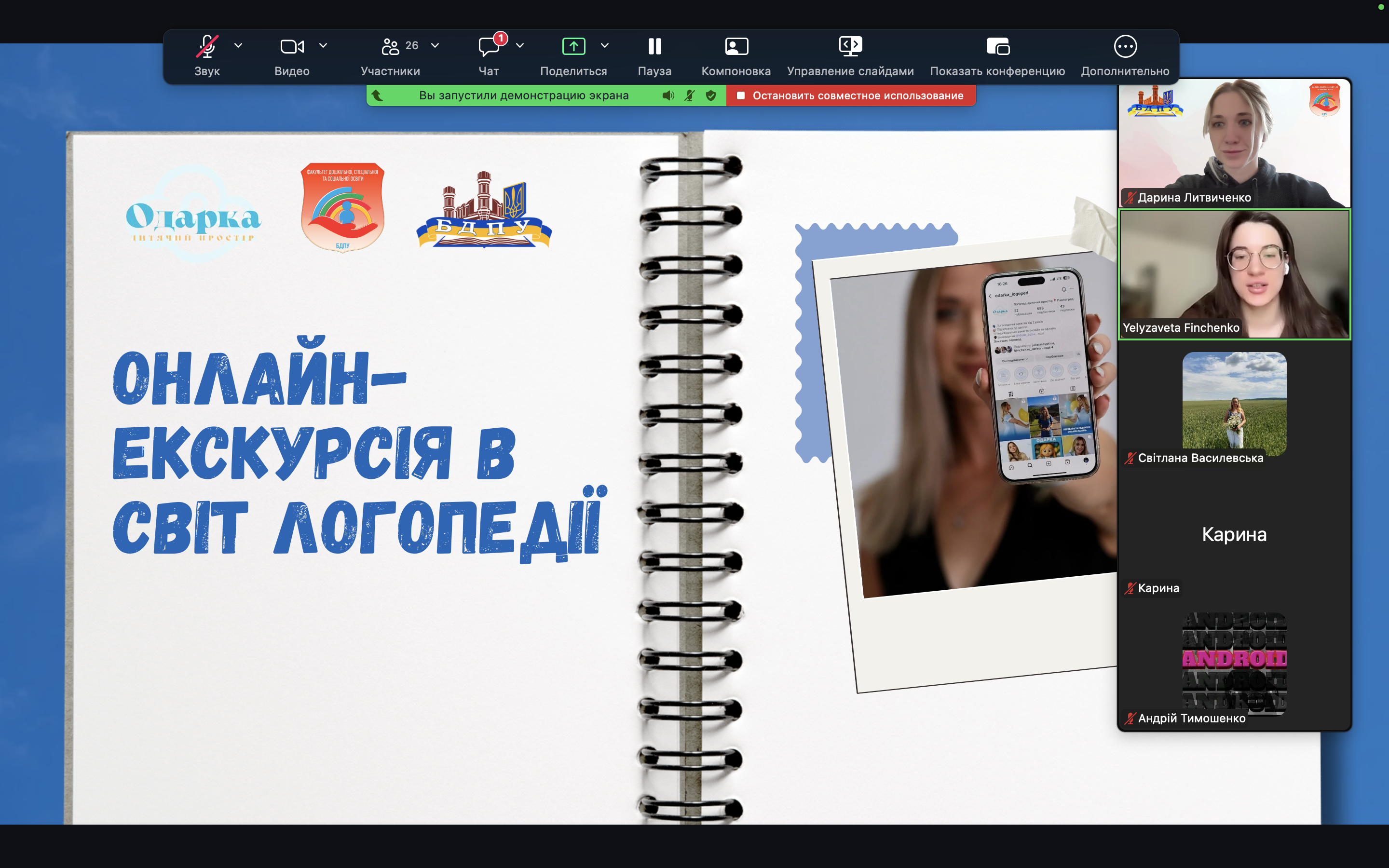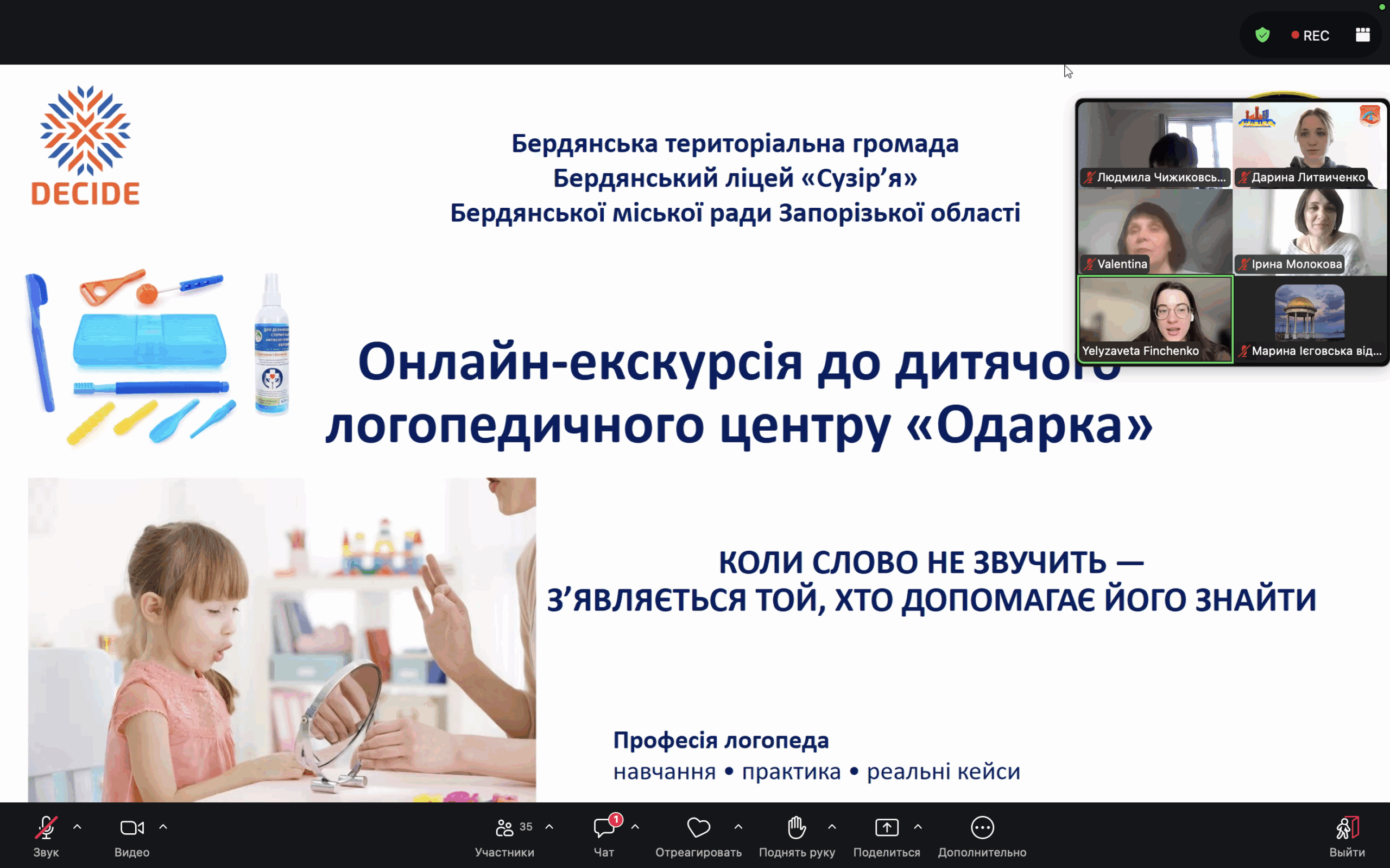Відбулася профорієнтаційна онлайн-екскурсія до дитячого простору центру «Одарка» для учнів 8–11 класів Бердянського ліцею «Сузір’я» Бердянської міської ради Запорізької області.