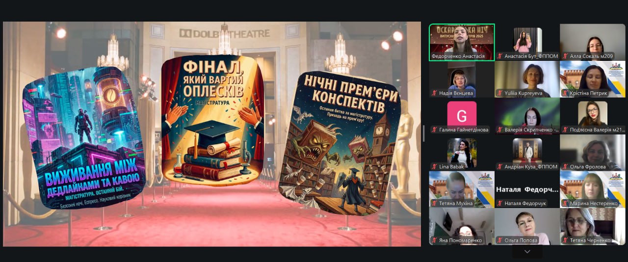Випускний магістрів факультету психолого-педагогічної освіти та мистецтв БДПУ цього року перетворився на справжню кінопрем’єру. Онлайн-церемонія пройшла у форматі «Оскарівської ночі», де кожен випускник став головною зіркою власного фільму. Атмосфера свята була сповнена радості та відчуття великої гордості, бо ця «прем’єра» стала фінальним кадром студентського життя й водночас першим трейлером майбутніх звершень.