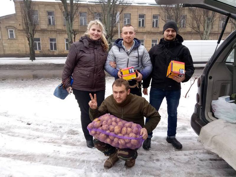 Друга наша мета – відвідування хлопців бойових підрозділів під Волновахою і Авдіївкою. Зустрічі, як завжди, були теплі, ми везли гостинці з дому: 10 літрів борщу від пані Марії, теплі пиріжки від пані Ірини, продукти від нашого друга, підприємця Віталія Байдали, бердянську тюлечку від Павла Сириці, маскувальні сітки (дякую всім дівчатам). Завдячуємо також: Олегу Зінченку, Сергію Матвєєву, Павлу Порохні, Руслану Папішу… Дякуємо також за чай, каву, різні смаколики від небайдужих бердянців: Олени Однолько, Тетяни Подумей, Ольги Удалової, Олексія Лескова…