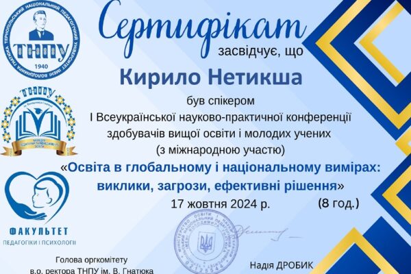 Минулого тижня Кирило Нетикша – студент м1Ма-з факультету МКТО БДПУ взяв участь та…