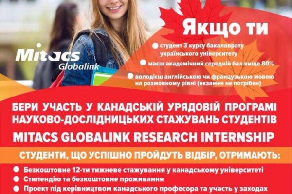 Запрошуємо до співпраці в рамках канадського урядового проекту стажувань Mitacs…