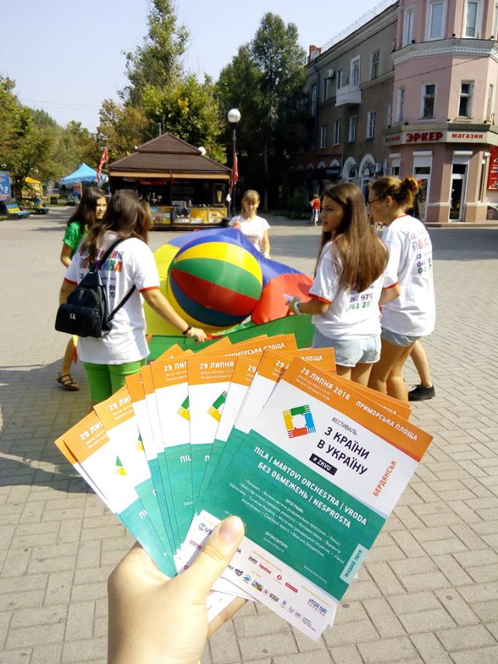 До локальної команди співорганізаторів Фестивалю в м.Бердянськ увійшли викладачі кафедри соціальної педагогіки Катерина Петровська та Анастасія Тургенєва. Для того щоб стати частиною команди мандрівного культурно-просвітницького фестивалю вони проходили навчання на workshop в м. Бердянськ та м. Харкові в травні місяці. Силами викладачів було сформовано команду волонтерів з 45 осіб від 12 до 60 років, різних соціальних груп та з різних міст. Основний склад команди поповнився студентами волонтерського загону «Палітра добра» кафедри соціальної педагогіки. Участь у подібних заходах сприяє новим знайомствам та згуртуванню волонтерів, розвитку впевненості, самостійності та ініціативи. Волонтери мали можливість побувати на різних локаціях, випробувати свої можливості і в анімаційній діяльності, і в промо акціях, під час виготовлення поробок на майстер класах тощо.
