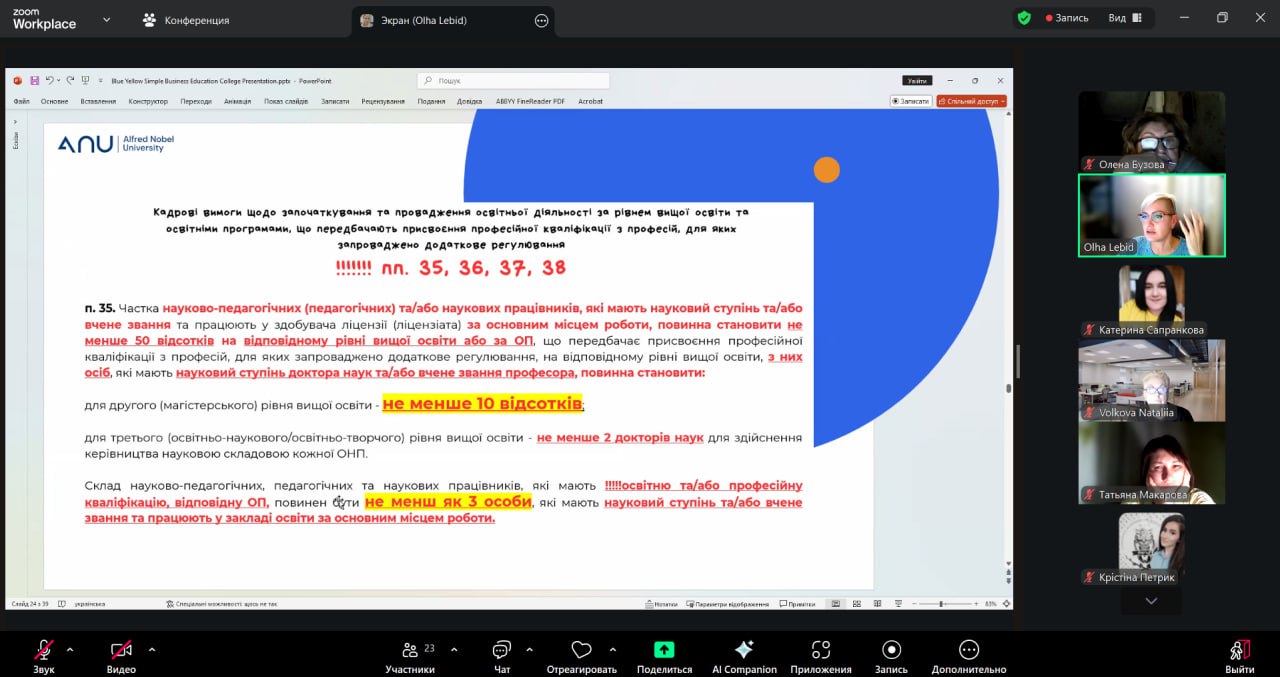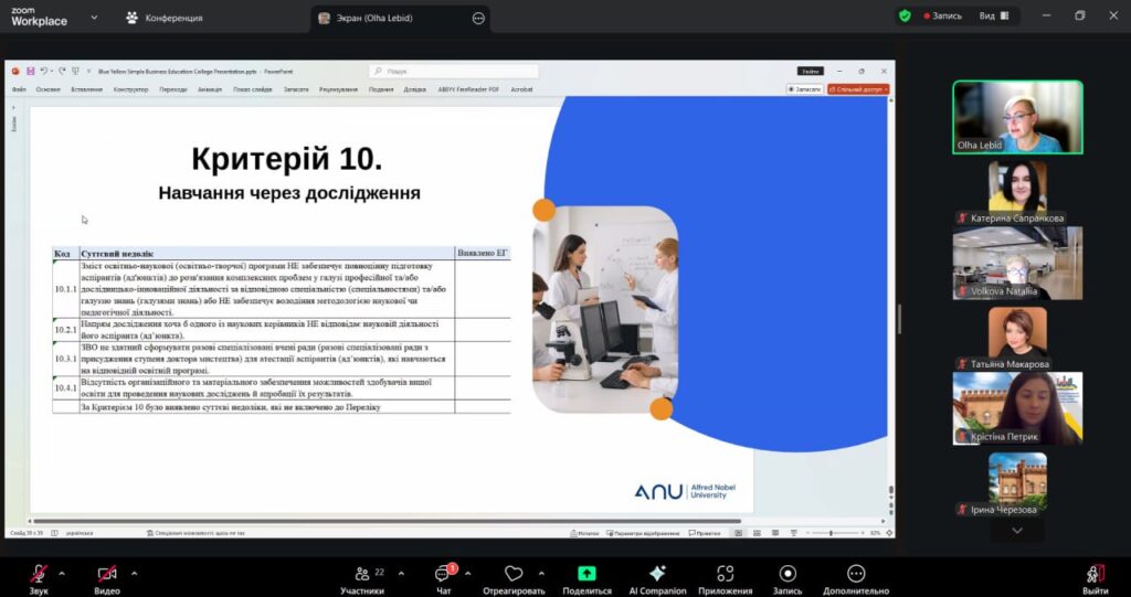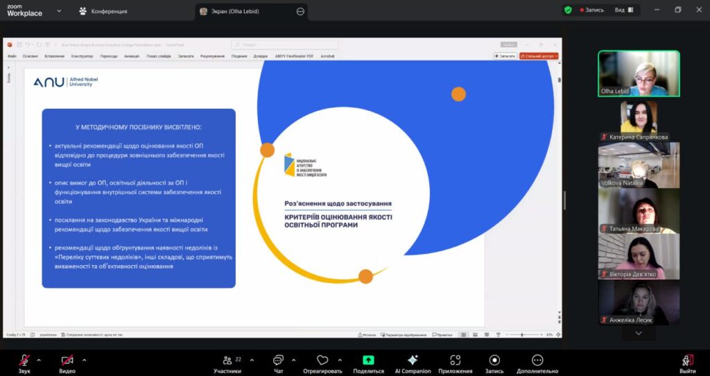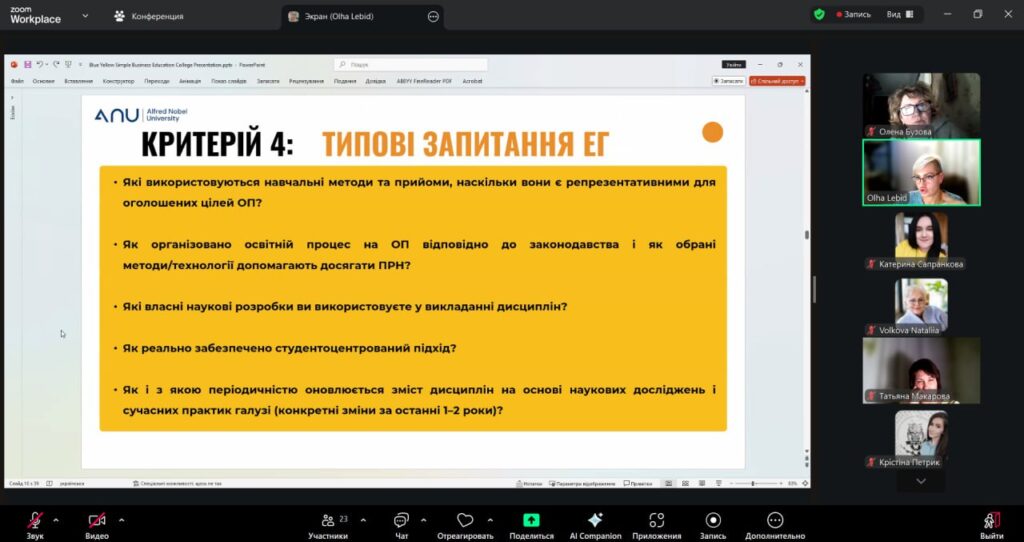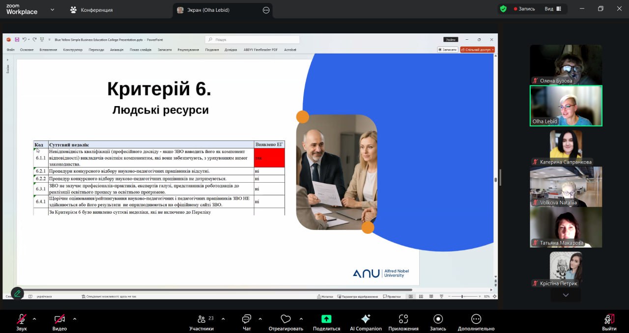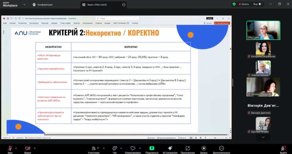 Науково-педагогічні працівники факультету психолого-педагогічної освіти та мистецтв БДПУ взяли участь у партнерському семінарі, організованому спільно з Університетом імені Альфреда Нобеля. Захід був присвячений ключовим аспектам акредитації освітніх програм як інструменту забезпечення якості та розвитку вищої освіти.