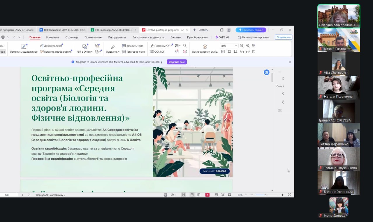 Захід об’єднав викладачів Бердянського державного педагогічного університету та Полтавського національного педагогічного університету імені В.Г. Короленка. Під час зустрічі було обговорено ОПП бакалаврського рівня: «Середня освіта (Біологія та здоров’я людини. Фізичне відновлення)», магістерського рівня: «Середня освіта. Біологія та здоров’я людини». Формат відкритого професійного діалогу дозволив здійснити ґрунтовний аналіз змісту програм, визначити напрями їх актуалізації та узгодити перспективи подальшого розвитку відповідно до сучасних освітніх викликів.