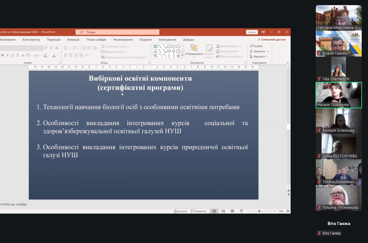 Партнерство зі стейкхолдерами в системі підготовки вчителя біології та основ здоров’я в сучасних умовах трансформації освітнього простору набуває стратегічного значення та розглядається як важливий чинник забезпечення якості педагогічної освіти. Упровадження нових Державних стандартів базової середньої освіти, орієнтація на концептуальні засади Нової української школи, посилення вимог до професійної компетентності вчителя зумовлюють необхідність системної, цілеспрямованої та довготривалої співпраці закладу вищої освіти з представниками освітнього середовища. Важливим прикладом реалізації партнерської взаємодії стало проведення у березні 2026 року на кафедрі біології, здоров’я людини та фізичної реабілітації зустрічі з обговорення освітньо-професійних програм бакалаврського та магістерського рівня вищої освіти.