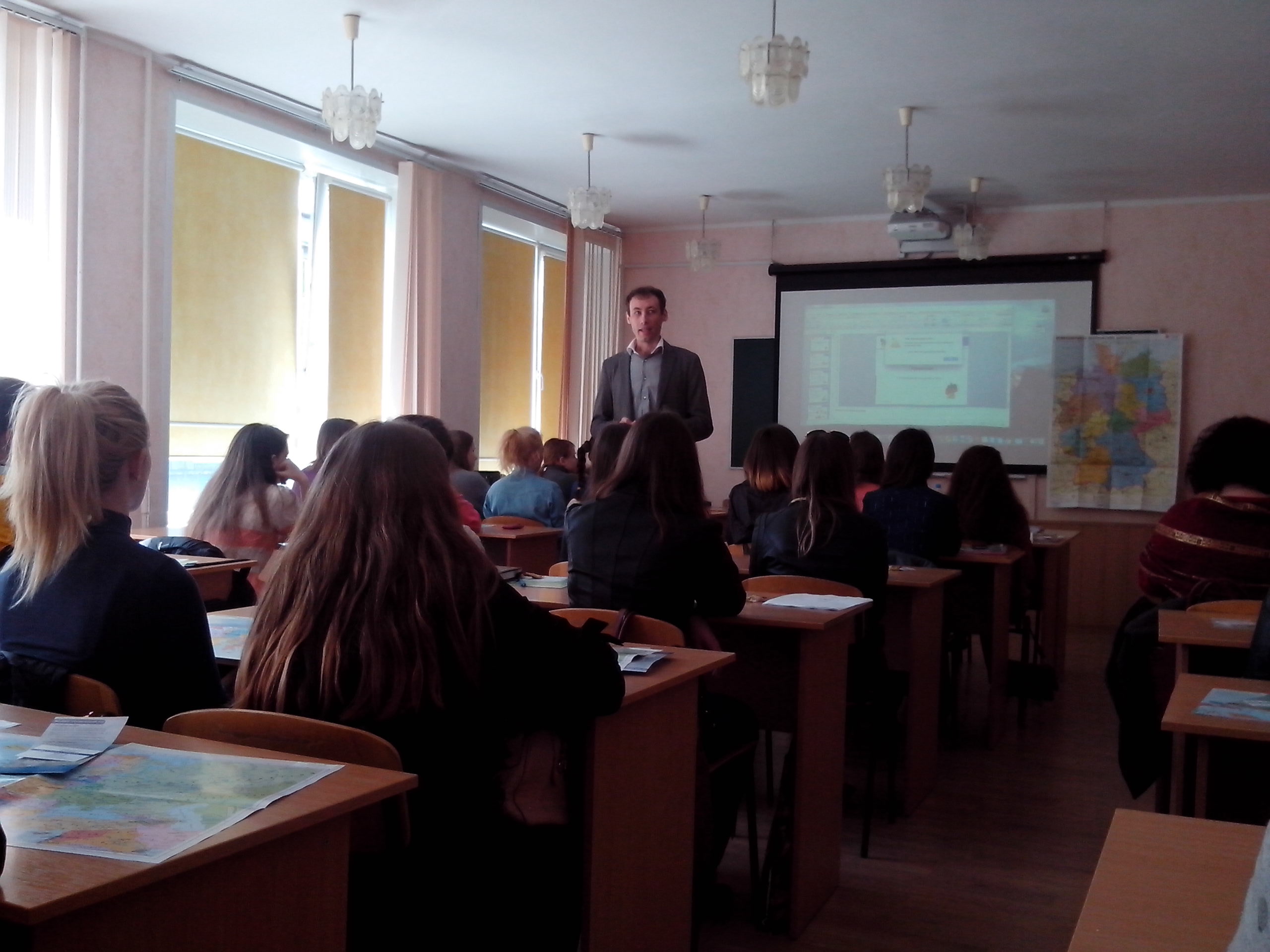 Цього ж дня професором кафедри іноземних мов і методики викладання Наталією Леміш було організовано інформаційну презентацію «Summer Work for Students in Germany» компанії Firma mitOst UG (Берлін, Федеративна Республіка Німеччина) про можливості навчання і роботи студентів у Німеччині у період літніх і зимових канікул. У заході взяли участь 50 студентів ІФСК та інших інститутів і факультетів БДПУ. Директор компанії Сергій Сердюк надав вичерпну інформацію про програму «Work and Travel Germany» у рамках державної програми ZAV, про різні програми стипендій і стажування з метою здобуття професійного досвіду в різних містах Німеччини, а також про вартість навчання у німецьких вищих навчальних закладах і заробітну плату, про витрати на харчування і проживання. Учасники презентації отримали контактну інформацію і мапу Німеччини у подарунок, а також пригостилися німецькими цукерками. Організатори зустрічі сподіваються, що ця презентація додасть студентам мотивації вивчати іноземні мови, тому що саме ці знання відкривають нові далекосяжні перспективи.
