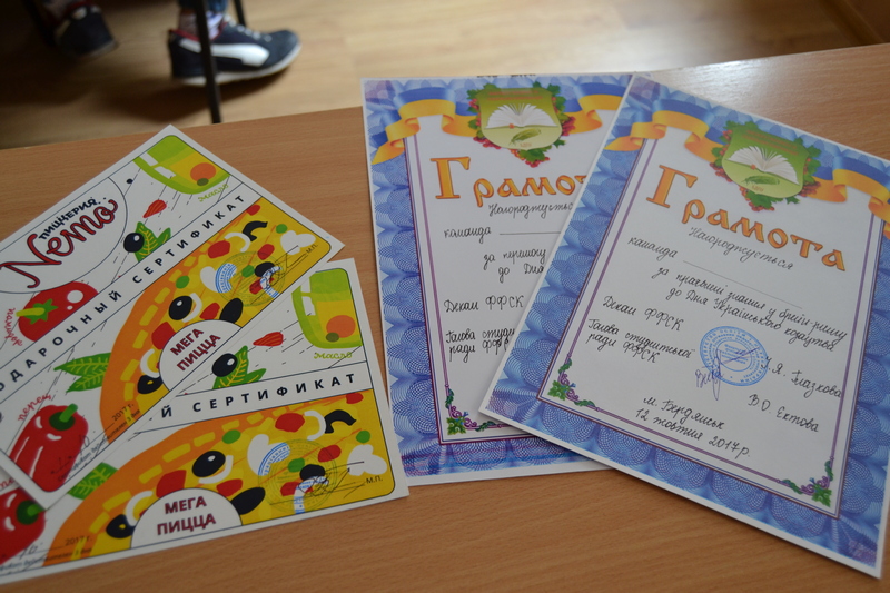За перемогу та участь в інтелектуальному змаганні обидві команди були нагороджені призами та сертифікатами на частування в піцерії «Немо».
