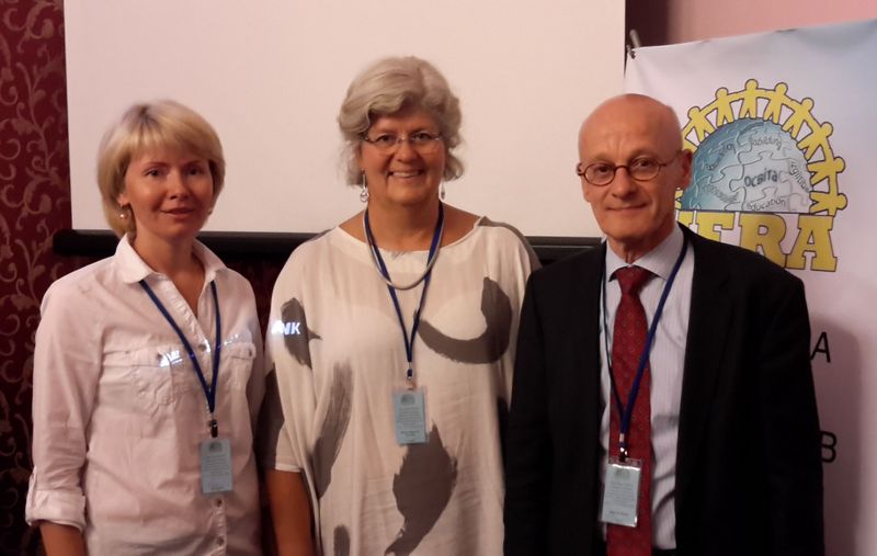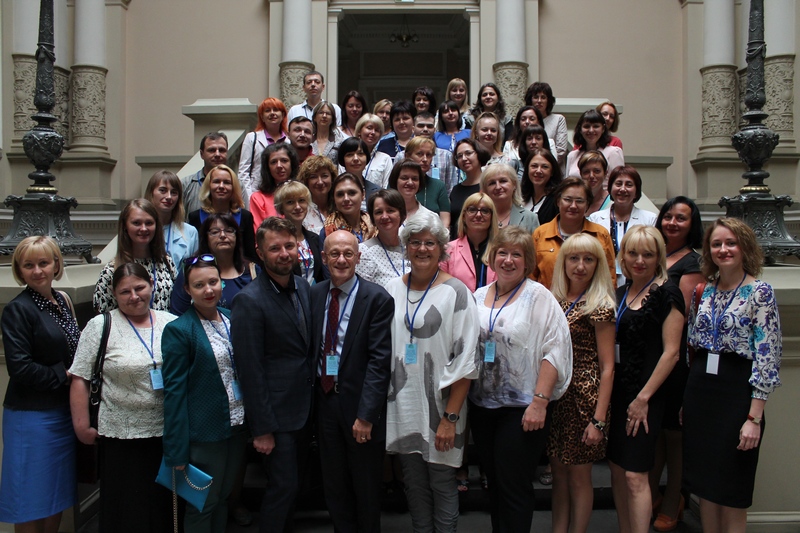 На світлинах: доцент Олена Ярова разом із президентом Європейської асоціації дослідників освіти проф. Тео Вубельзом та генеральним секретарем цієї асоціації Маріт Хонерод Ховейд; президент Української асоціації дослідників освіти учасників проф. Світлана Щудло вручає сертифікати учасникам школи; робоча група Першої літньої школи UERA.